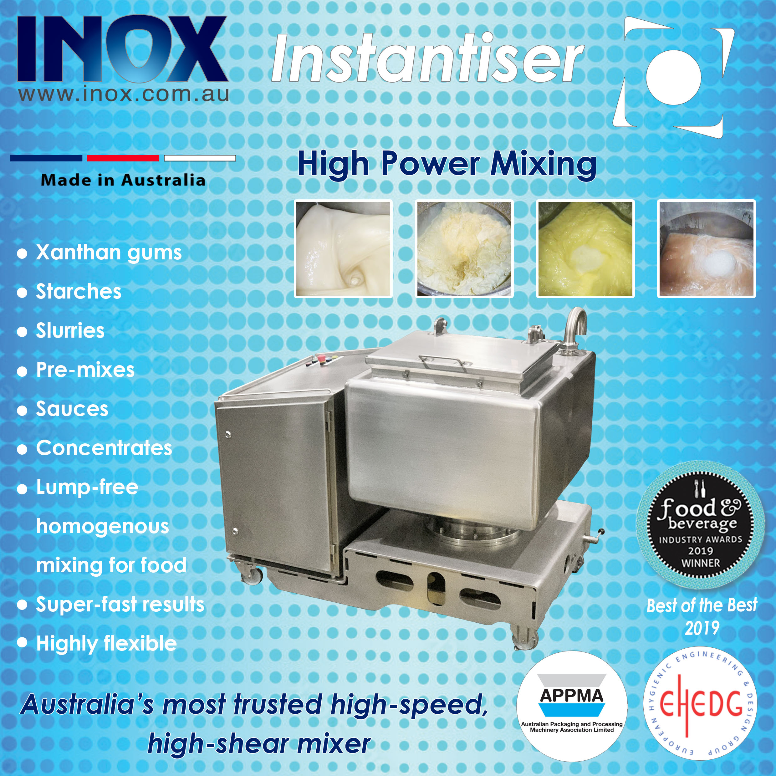 High-speed cutting and mixing of almost any food product in record processing time. The INOX Scorpion Instantiser is made in Australia and is based upon our proven instantiser mixing technology. Delivering true processing flexibility.